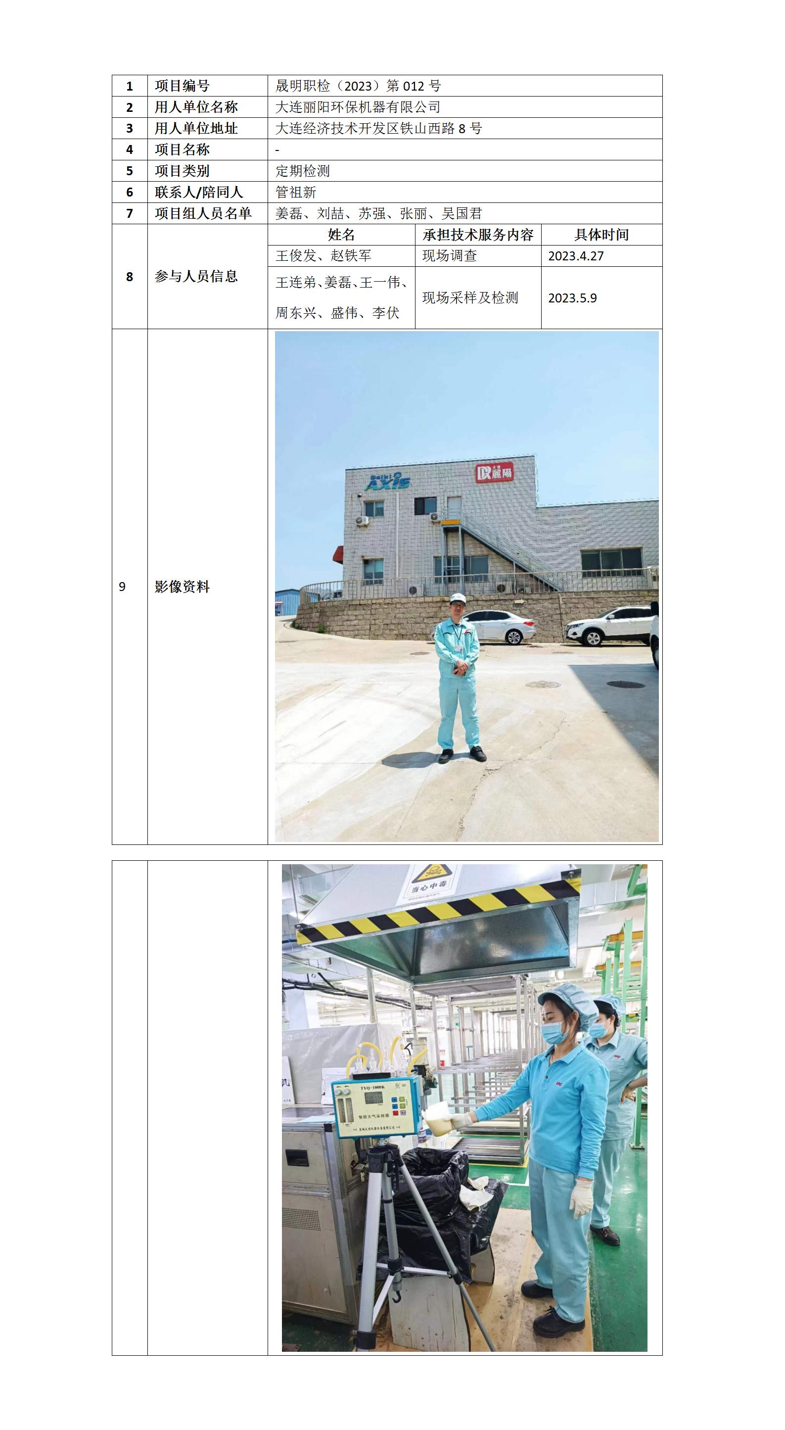 晟明職檢(2023)第012號 大連麗陽環(huán)保機(jī)器有限公司