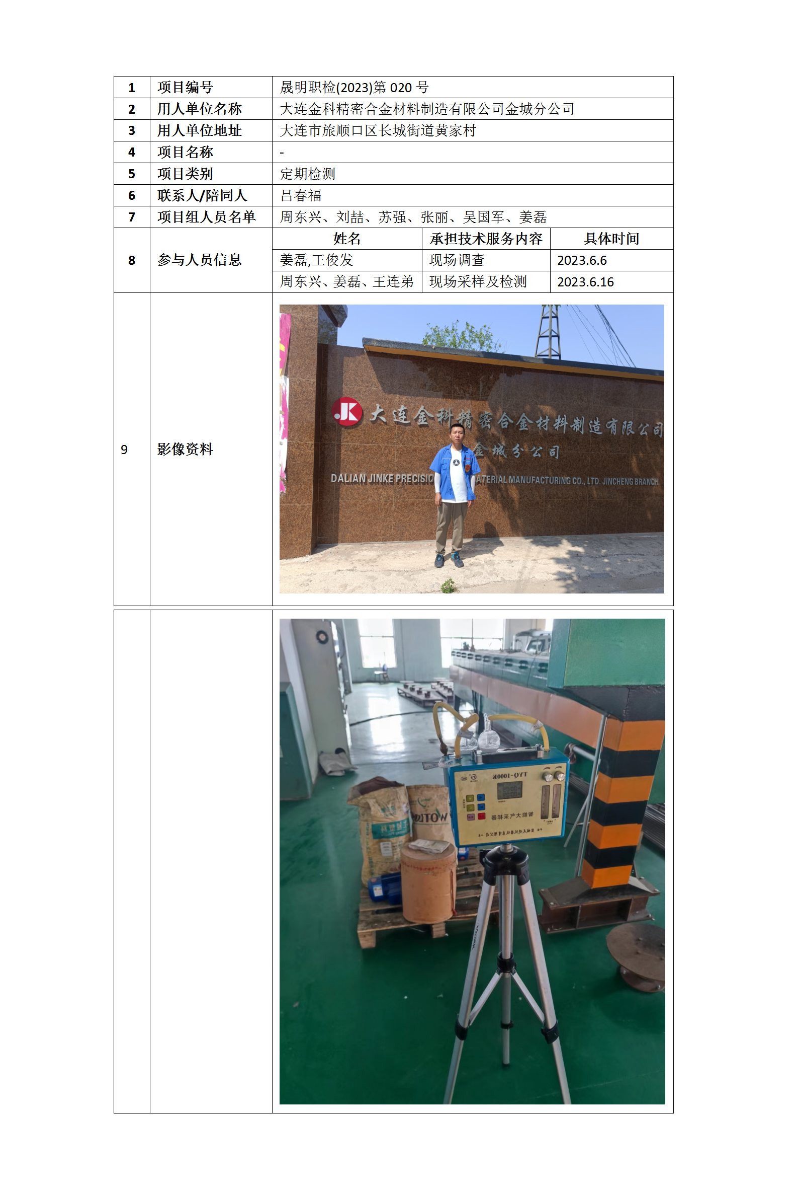 晟明職檢(2023)第019號 大連金科精密合金材料制造有限公司