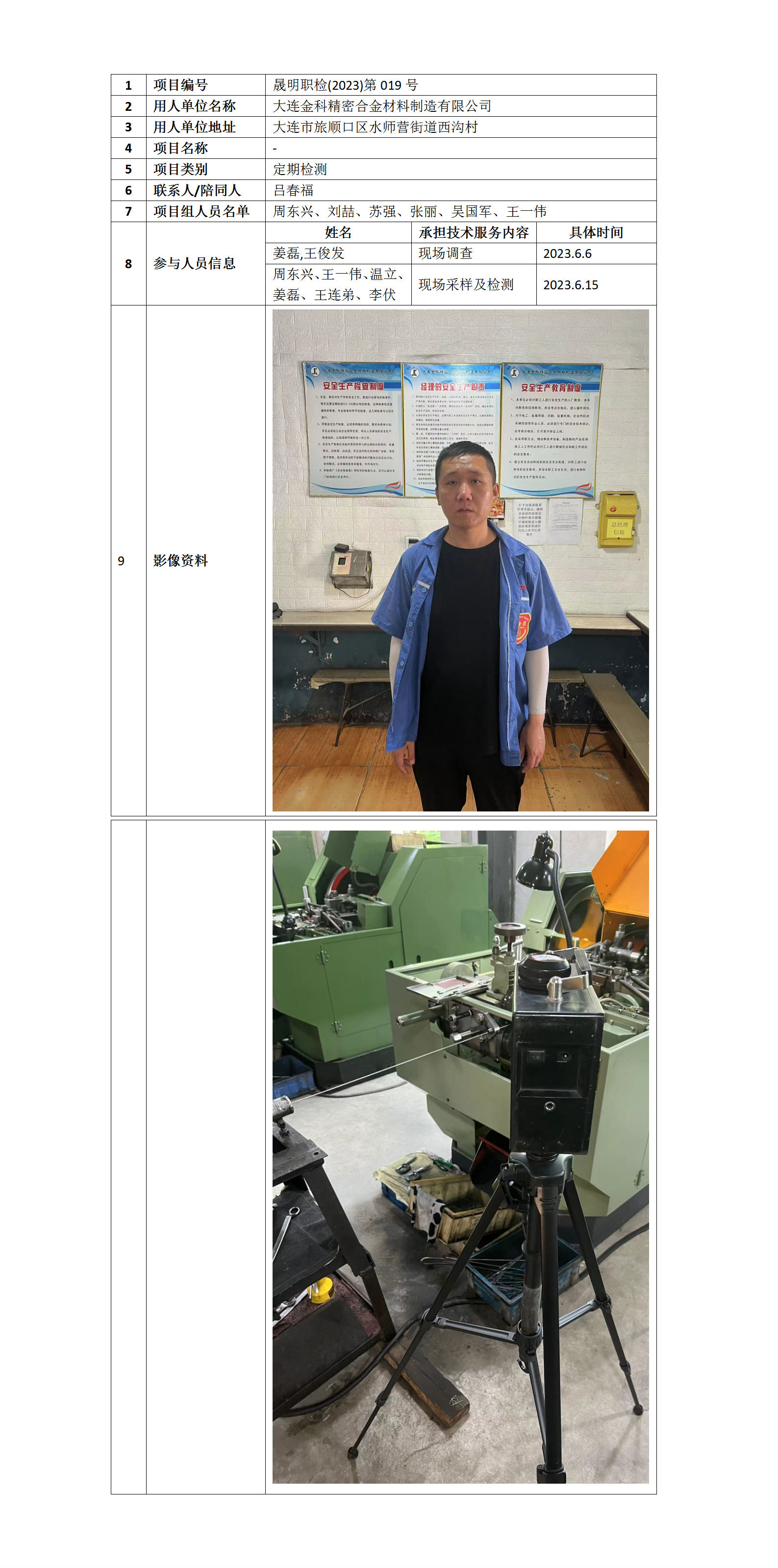 晟明職檢(2023)第020號 大連金科精密合金材料制造有限公司金城分公司