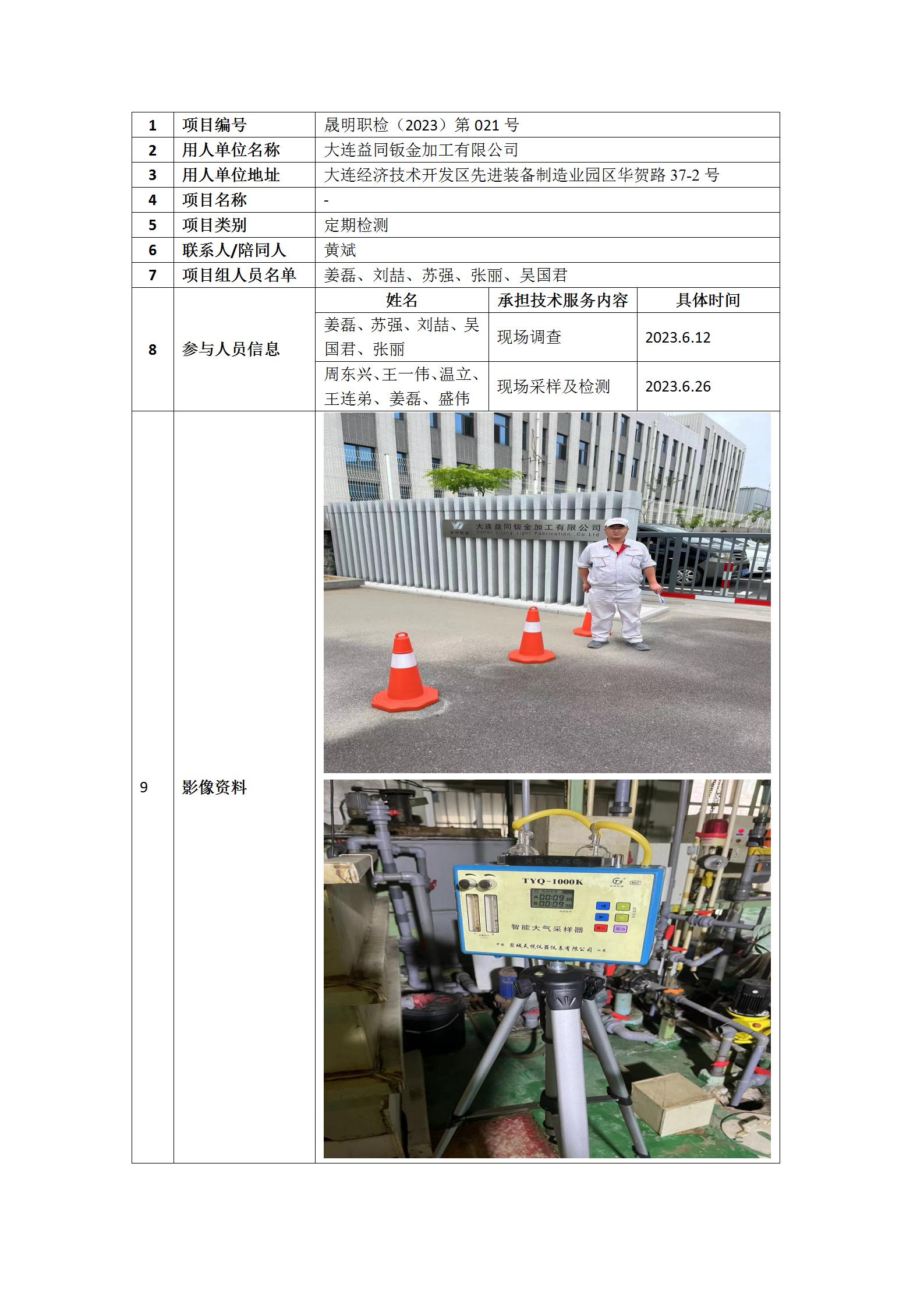 晟明職檢(2023)第021號 大連益同鈑金加工有限公司