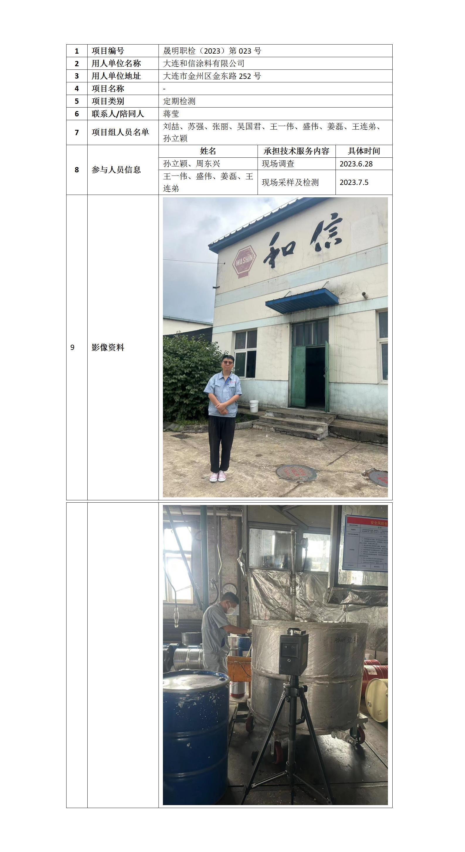 晟明職檢(2023)第023號 大連和信涂料有限公司