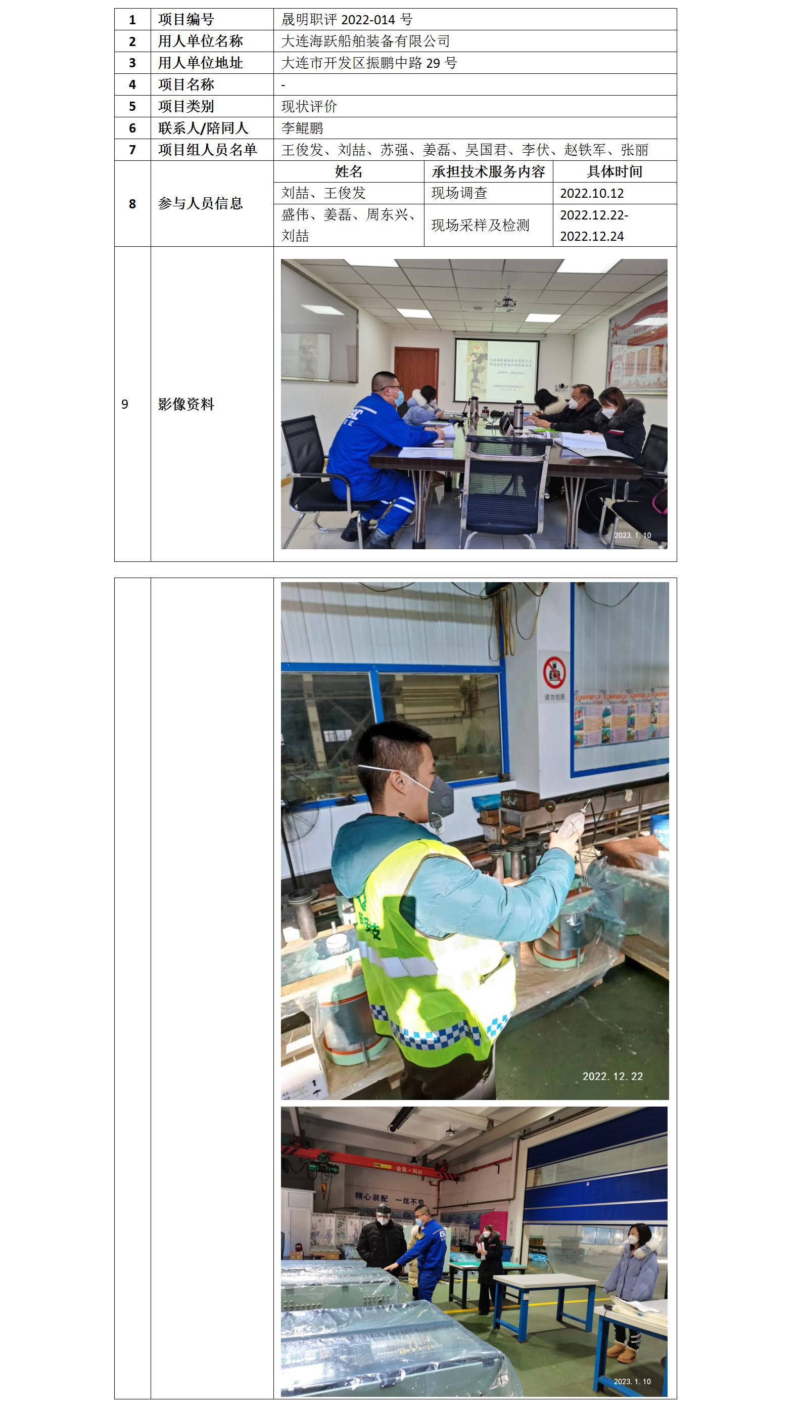 晟明職評(píng):2022-014 大連海躍船舶裝備有限公司
