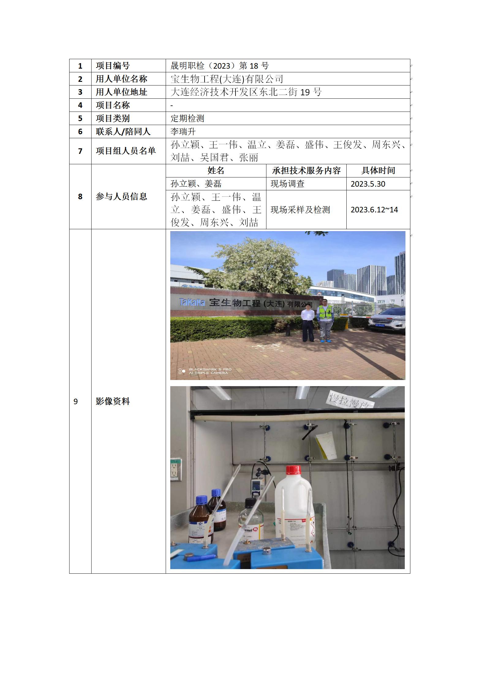 晟明職檢(2023)第018號 寶生物工程(大連)有限公司
